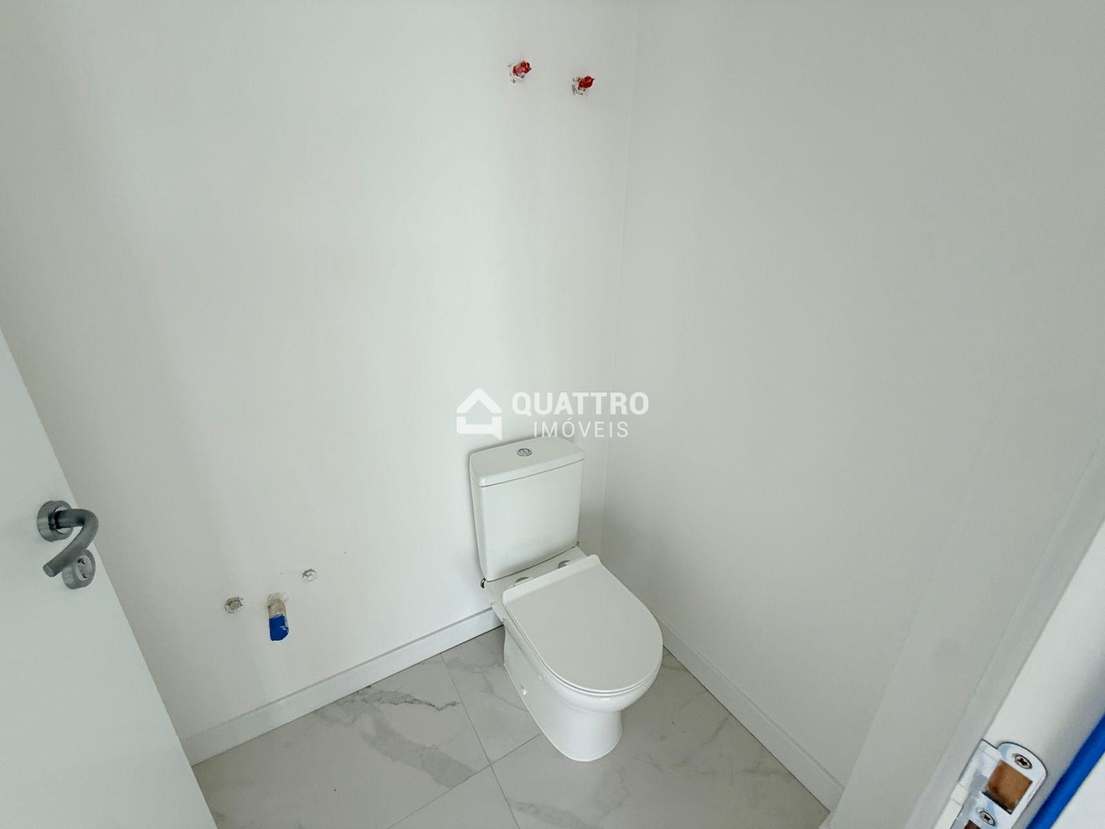 No piso superior, o imóvel conta com cozinha, sala de jantar, lavabo, área de serviço e uma ampla sacada com espaço para jacuzzi, ideal para momentos de lazer.